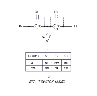 隔離度和串?dāng)_作為模擬開關(guān)的又一項(xiàng)重要性能指標(biāo),在高頻率信號(hào)的切換中越來越受到人們的關(guān)注。英聯(lián)電子的高隔離度模擬開關(guān)采用T-Switch結(jié)構(gòu),有效實(shí)現(xiàn)了信號(hào)隔離,抑制了信號(hào)串?dāng)_。圖7是T-Switch結(jié)構(gòu)圖。當(dāng)開關(guān)導(dǎo)通時(shí),內(nèi)部的S1、S3閉合,S2斷開,從而實(shí)現(xiàn)信號(hào)的有效傳輸;當(dāng)開關(guān)斷開時(shí),S1、S3斷開,S2 閉合,這樣輸入端-Cs-地形成了一條耦合回路,同時(shí)由于兩個(gè)Cs導(dǎo)通寄生電容的存在,輸入信號(hào)更難耦合到信號(hào)輸出級(jí),這樣提高了開關(guān)的隔離度和抗串?dāng)_能力。