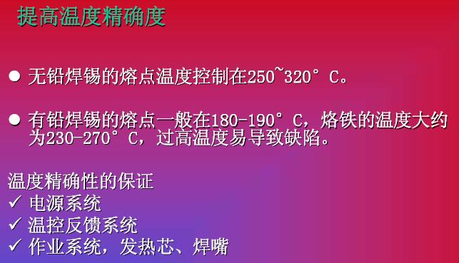 在焊接工具的改進(jìn)方面,包括提高溫度精確度,提高發(fā)熱功率,工藝改進(jìn)三方面內(nèi)容。