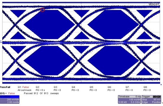 2)傳輸變壓器,工程師將一款測試通過的產(chǎn)品的Transformer與當(dāng)前單板的Transformer進(jìn)行互換后測試結(jié)果一致,眼圖測試依然不通過。(請注意這里并沒有對變壓器進(jìn)行變比以及差損,回?fù)p等技術(shù)指標(biāo)的測試)