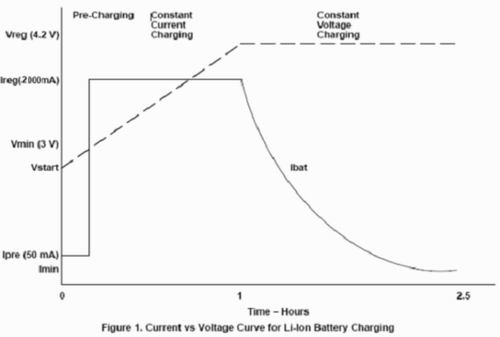 由于MSP430F20X3系列的指令速度可達16MIPS,且SD_16的采樣速度為4kSPS,而且電池電壓/電流/溫度變化緩慢,因此對電池組中單節(jié)電池電壓/電流/溫度檢測采用輪回檢測即可完全滿足系統(tǒng)設(shè)計需要;16位的高精度保證了對每節(jié)電池溫度、恒流、恒壓等要求的準(zhǔn)確控制。對單節(jié)鋰電池充電的曲線如圖3。