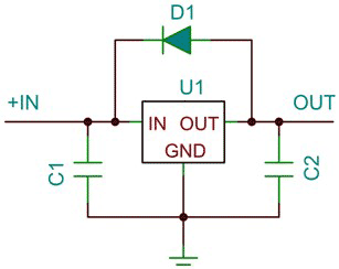另一個動態(tài)性能變量是輸出噪聲。通過增加穩(wěn)壓器輸出端的濾波器電容一般可以降低輸入紋波和輸出噪聲,但是會延長瞬態(tài)恢復(fù)時間。線性穩(wěn)壓器的運行依賴于一個內(nèi)部增益級。為了防止該增益級出現(xiàn)振蕩,通常會需要一個最小輸出濾波器電容(請參見圖1中的C2)。一個輸入濾波器電容(請參見圖1中的C1)將有助于穩(wěn)壓器服務(wù)于瞬態(tài)負載,尤其是在穩(wěn)壓器遠離電源時更需要這樣一個輸入濾波器電容。許多穩(wěn)壓器都不容許存在反向電壓。如果輸出電容被充電至輸出電壓,同時輸入短路至接地,那么穩(wěn)壓器將出現(xiàn)反向電壓,并且在所有電路獲得放電以前穩(wěn)壓器都會鎖閉在某種未知狀態(tài)中。這種故障狀態(tài)可能會引起穩(wěn)壓器自毀。為了避免出現(xiàn)這種故障模式,可能會需要一個反向二極管鉗位(請參見圖3)。