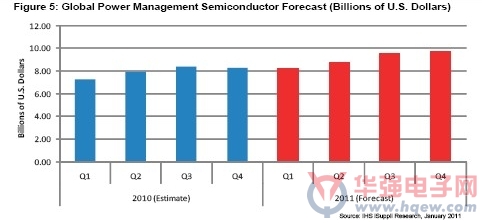 2011年的其它趨勢包括,電源IC集成度進(jìn)一步提高;擁有進(jìn)一步集成其芯片的技術(shù)的供應(yīng)商,將在銷售收入方面獲益最多。