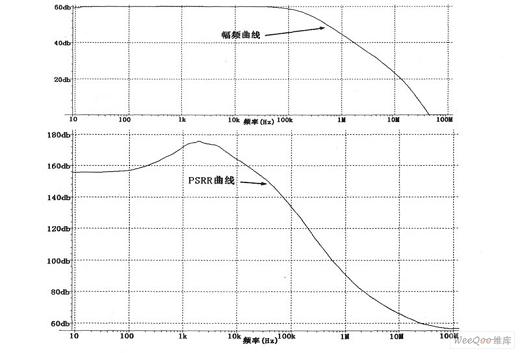 利用Hspice仿真得到比較器A1的幅頻曲線和PSRR,如圖3所示。