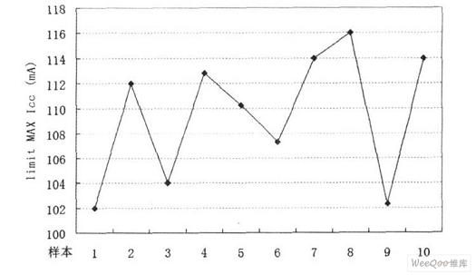 將以上設(shè)計(jì)的限流電路嵌入某穩(wěn)壓芯片(內(nèi)含電荷泵電路)中,實(shí)現(xiàn)流片量產(chǎn)(CMOS工藝)。當(dāng)VDD=3V時(shí),通過測量量產(chǎn)芯片得到輸出電流極限數(shù)據(jù)。統(tǒng)計(jì)如圖5所示,可知當(dāng)輸出電流處于100~120mA范圍內(nèi)時(shí),限流電路開始工作,關(guān)閉系統(tǒng)即保護(hù)LDO安全。由此可見,本設(shè)計(jì)電路結(jié)構(gòu)簡單,功能可靠,可廣泛應(yīng)用于電源芯片中。
