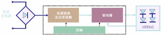 在“功率因數(shù)校正(PFC)+恒壓(CV)+恒流(CC)”的三段式架構(gòu)下,交流-直流(AC-DC)轉(zhuǎn)換與LED驅(qū)動(dòng)電路并未集成在一起,而是采用分布式配置,既簡化安全考慮又增強(qiáng)系統(tǒng)靈活性,也稱作分布式方案,典型應(yīng)用包括線性燈及線槽燈等。