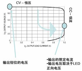 小功率的LED電源通常以恒流驅(qū)動,其恒壓功能是在輸出開路的情況下做為保護(hù)功能。小功率LED驅(qū)動器特性如圖1所示。
