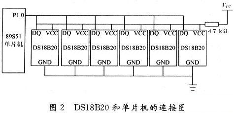 DS18B20和單片機的連接如圖2所示,由VCC直接供電,連接一個4.7kΩ左右的上拉電阻,DQ直接連到單片機的P1.0口上。