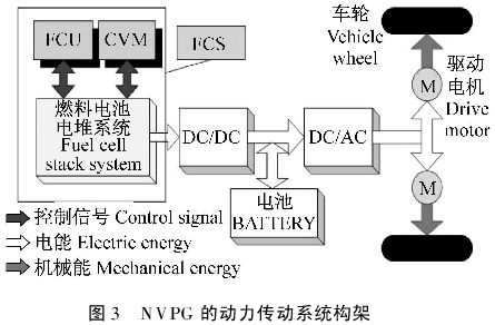 直接燃料電池混合動(dòng)力系統(tǒng)式結(jié)構(gòu)中采用的電力電子裝置只有電機(jī)控制器,燃料電池和輔助動(dòng)力裝置都直接并接在電機(jī)控制器的入口。如豐田的FCHV-4, FIAT-Elettra和日產(chǎn)X-TrailFCV等都采用這種類似的結(jié)構(gòu)設(shè)計(jì)。