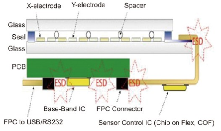 圖2 控制IC在軟板上的觸控模組之ESD潛在危險