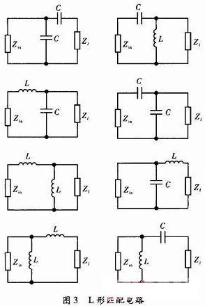 L形匹配電路:這類電路具有線路簡(jiǎn)潔和成本較低的優(yōu)點(diǎn),缺點(diǎn)是窄帶電路。由于要考慮匹配和功率的損耗,盡量使用電感和電容性的元件,因此共有8種基本的電路可供選擇。要設(shè)計(jì)合理的匹配電路就要選擇合適的電容電抗元件參數(shù),計(jì)算元件參數(shù)有兩類方法:通過阻抗直接計(jì)算和通過史密斯圓圖。前者的優(yōu)點(diǎn)是計(jì)算精確且適合計(jì)算機(jī)計(jì)算,后者是一種直觀有效的設(shè)計(jì),可以充分合理地選擇最優(yōu)性能?,F(xiàn)在可以通過使用計(jì)算機(jī)和功能強(qiáng)大的軟件直接設(shè)計(jì)。