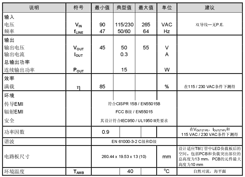 此設(shè)計的主要目標是超薄和高效率。這樣有助于使驅(qū)動器板適應(yīng)T8燈管內(nèi)LED負載板后的空間,并將工作時的溫升保持在可接受的范圍以內(nèi)。為此,必須認真選擇元件和安裝方法,但這相比于方案的更換更加簡單,因為初級側(cè)調(diào)節(jié)的LinkSwitch-PH設(shè)計所需的元件數(shù)量很少。