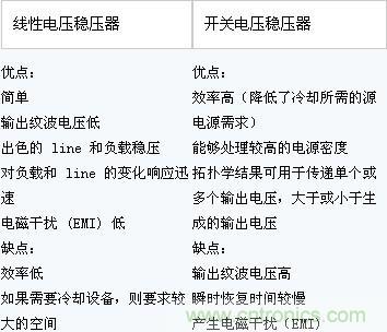 1.線性穩(wěn)壓器與開關(guān)穩(wěn)壓器的主要優(yōu)劣勢(shì)特點(diǎn)如下表所示: