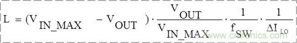 為選擇適當(dāng)?shù)碾姼?,通常可假定電流紋波ΔILO為電感平均電流的30%,然后根據(jù)下面的公式直接計(jì)算出合適的電感值。