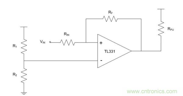 圖2.比較器配置為非反相施密特觸發(fā)器