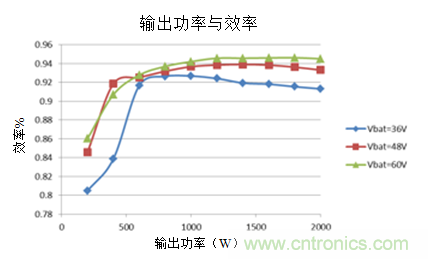 參考設計在降壓模式(作為充電器)下的峰值效率為94%,在升壓模式(放電期間)為95%,平均效率高于93%。這種高放電效率為電池提供更長的運行時間。在36V至60V的寬輸入電壓范圍內,使用電流饋電全橋級在放電模式下實現(xiàn)高效率,其優(yōu)化隔離變壓器的設計,以繞組中的最小化均方根(RMS)電流,同時最小化通過輸入電容器的紋波電流。
