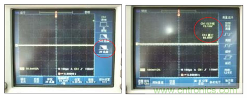 (3)調試示波器屏幕顯示測量值〈均方根〉、〈最大值〉二個測量項目。如下: