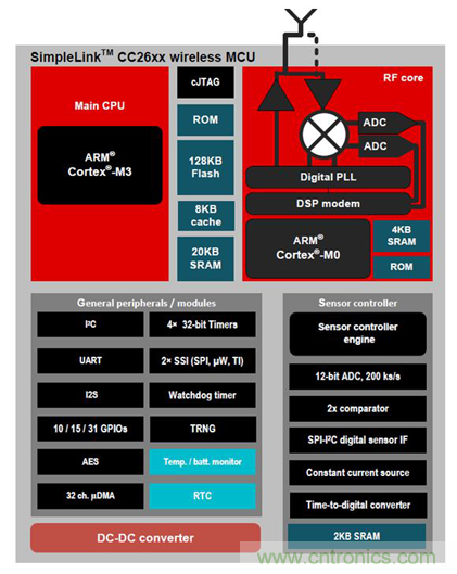 MCU帶集成藍(lán)牙®低功耗無線電:采用TI的SimpleLink超低功耗無線MCU平臺(tái),具有低功耗無線電和MCU組合使傳感器終端節(jié)點(diǎn)的電池使用壽命延長(zhǎng)。而且,CC2650設(shè)備是一個(gè)多標(biāo)準(zhǔn)設(shè)備,針對(duì)藍(lán)牙、ZigBee®、6LoWPAN和ZigBeeRF4CE遙控器應(yīng)用。在這個(gè)TI設(shè)計(jì)中,藍(lán)牙是可選擇的協(xié)議,但是硬件也可以與其他協(xié)議一起工作。