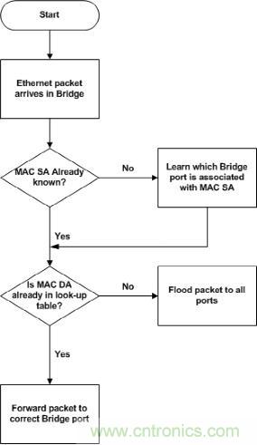 在圖1中,如果傳入幀的源地址(SA)以前沒(méi)有記錄,則將其與幀的傳入端口號(hào)一起添加到地址數(shù)據(jù)庫(kù)中。如果目標(biāo)地址(DA)已經(jīng)存在于網(wǎng)橋的查找表中,則數(shù)據(jù)包會(huì)相應(yīng)地轉(zhuǎn)發(fā),否則幀將被泛洪處理。多年來(lái),管理L2所用協(xié)議的IEEE標(biāo)準(zhǔn)(如802.1 MAC橋、VLAN和基于端口的網(wǎng)絡(luò)訪問(wèn)控制標(biāo)準(zhǔn))都集中在以太網(wǎng)幀的前16個(gè)字節(jié)。這些標(biāo)準(zhǔn)也在不斷發(fā)展,最近增加的包括以太網(wǎng)音視頻橋接技術(shù)(AVB)和時(shí)間敏感網(wǎng)絡(luò)標(biāo)準(zhǔn)(如802.1AS)。特別是,在汽車環(huán)境中對(duì)確定性網(wǎng)絡(luò)的需求正變得越來(lái)越急迫,以確保網(wǎng)絡(luò)中及時(shí)和可靠的數(shù)據(jù)傳輸。將所有ECU鎖定在單個(gè)主時(shí)鐘源并保持AV內(nèi)容質(zhì)量只是其中兩個(gè)例子,更多增強(qiáng)的功能還在引入以便于檢查OSI 3層信息,例如IPv4 / IPv6數(shù)據(jù)包優(yōu)先級(jí)和IPv4 / IPv6偵聽(tīng)。