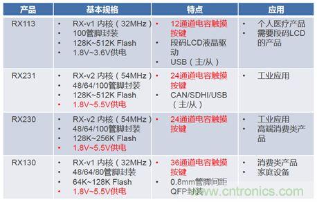 瑞薩電子提供4個產(chǎn)品系列,來適用于不同的應(yīng)場合,分別為RX113、RX130、RX230、RX231。