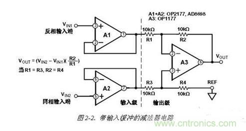 如果R1 = R3,R2 = R4,則VOUT = (VIN2—VIN1)(R2/R1)