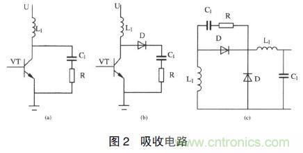 開關(guān)電源產(chǎn)生EMI 的主要原因是電壓和電流的急劇變化, 因而需要盡可能地降低電路中電壓和電流的變化率( du/ dt 和di/ dt ) 。采取吸收電路能夠抑制EMI, 其基本原理就是在開關(guān)關(guān)斷時為其提供旁路, 吸收積蓄在寄生分布參數(shù)中的能量, 從而抑制干擾的發(fā)生??梢栽陂_關(guān)管兩端并聯(lián)如圖2( a) 所示的RC 吸收電路, 開關(guān)管或二極管在開通和關(guān)斷過程中, 管中產(chǎn)生的反向尖峰電流和尖峰電壓, 可以通過緩沖的方法予以克服。緩沖吸收電路可以減少尖峰電壓的幅度和減少電壓波形的變化率, 這對于半導體器件使用的安全性非常有好處。與此同時, 緩沖吸收電路還降低了射頻輻射的頻譜成份, 有益于降低射頻輻射的能量。箝位電路主要用來防止半導體器件和電容器被擊穿的危險。