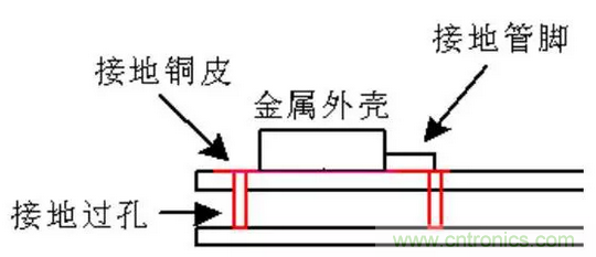 12、金屬外殼接地的器件如晶振,應在其投影面的頂層上鋪接地鈾皮,目的是通過金屬外殼與接地銅皮之間的分布電容來抑制其對外輻射和提高抗干擾能力。