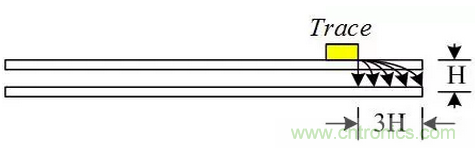 11、關鍵信號線距參考地平面邊沿≥3H(H為線距離參考平面的高度),特別是電源走線