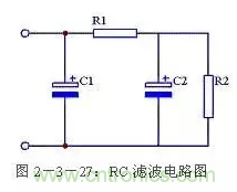 使用兩個(gè)電容和一個(gè)電阻組成RC濾波電路,又稱π型RC濾波電路。見圖2-3-27所示。這種濾波電路由于增加了一個(gè)電阻R1,使交流紋波都分擔(dān)在R1上。R1和C2越大濾波效果越好,但R1過大又會造成壓降過大,減小了輸出電壓。一般R1應(yīng)遠(yuǎn)小于R2。