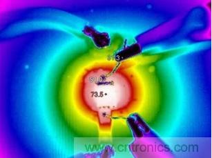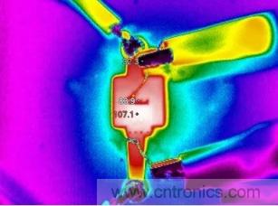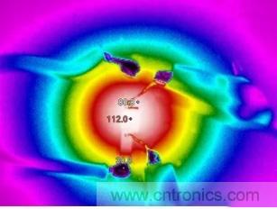 將10cmX10cm的二層PCB板的覆銅改為1OZ,重復(fù)上面實(shí)驗(yàn),測(cè)量的溫度如下圖所示。