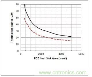 (2)增加PCB板覆銅的厚度可以明顯的降低熱阻,但是厚覆銅會(huì)增加PCB的成本。