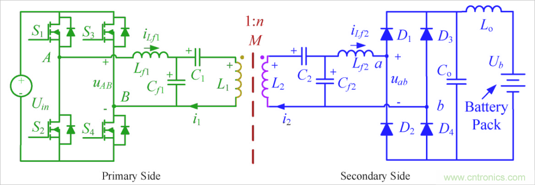 為了適應(yīng)負(fù)載的波動(dòng),往往采用LCC電路補(bǔ)償形式。它可以在了負(fù)載變化的情況下,維持發(fā)送線圈中的電流恒定,從而提高了系統(tǒng)的穩(wěn)定性。
