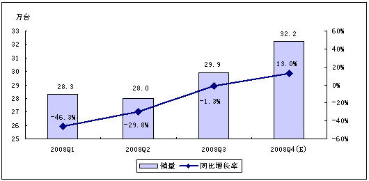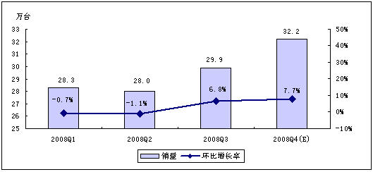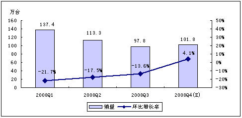 賽迪顧問預測,受全球經濟危機以及中國經濟發(fā)展趨緩等因素影響,2008年第四季度,MP3/PMP播放機行業(yè)將不會呈現(xiàn)快速增長的勢頭,但年終禮品市場的啟動,在一定程度上仍然會拉動整體市場向前發(fā)展。賽迪顧問預計,2008年第四季度,中國MP3/PMP播放機市場銷量為134.0萬臺,銷售額將達7.9億元。