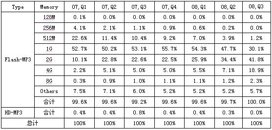 - 2008年第三季度,MP3市場仍然下滑-13.6%
