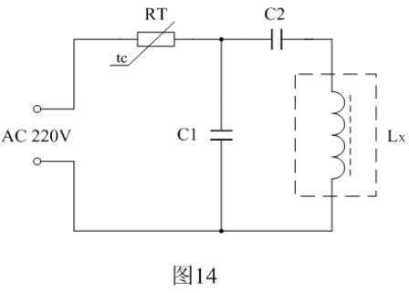 圖14中RT為熱敏電阻,Lx為行推動(dòng)變壓器的初級線圈,C1為分流電容,C2為限流電容。電容C1和C2的大小,需根據(jù)行推動(dòng)變壓器初級線圈勵(lì)磁電流的大小來決定。一般消磁電流需要達(dá)到極限電流Imax的3~5倍。