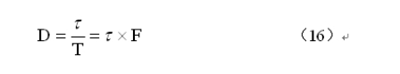 c.開關(guān)電源變壓器工作電壓的脈沖寬度 ,可由開關(guān)電源在某工作電壓狀態(tài)下(最高或最低),對應(yīng)的占空比D求得。下面(16)式和(17)式是計(jì)算脈沖寬度 和占空比D的關(guān)系式: