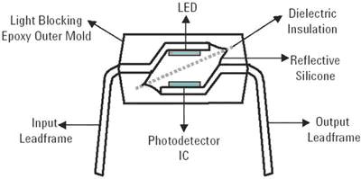 光學(xué)耦合器的工作基礎(chǔ)是LED發(fā)出的光通過透明的絕緣介質(zhì)到光電探測器,這種介質(zhì)提供2.5kV-6kV范圍的高壓絕緣。光耦合程度取決于光導(dǎo)材料。絕緣將通過光導(dǎo)材料本身或通過額外的光傳導(dǎo)介電材料實(shí)現(xiàn)。在任何情況下,LED的排列、光導(dǎo)材料、介電材料和IC都會直接影響光耦合和高壓絕緣的性能。