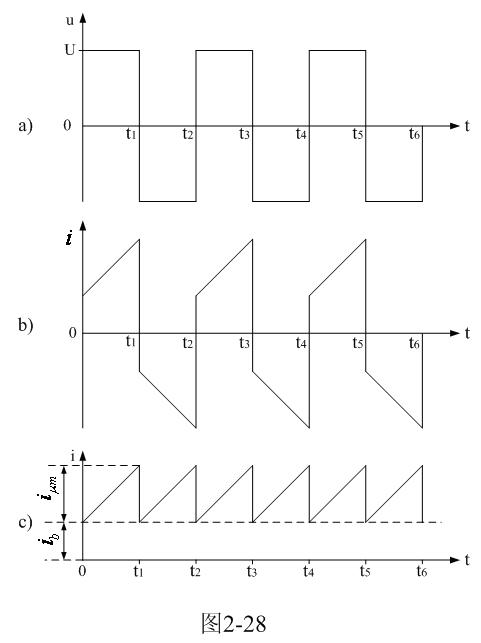 圖2-28是圖2-27電路中變壓器初級(jí)線圈兩端電壓、電流以及取樣電阻上的電壓波形圖。圖2-28-a是變壓器初級(jí)線圈兩端的電壓波形;圖2-28-b是流過(guò)變壓器初級(jí)線圈兩端的電流波形;圖2-28-c是取樣電阻兩端的電壓波形。