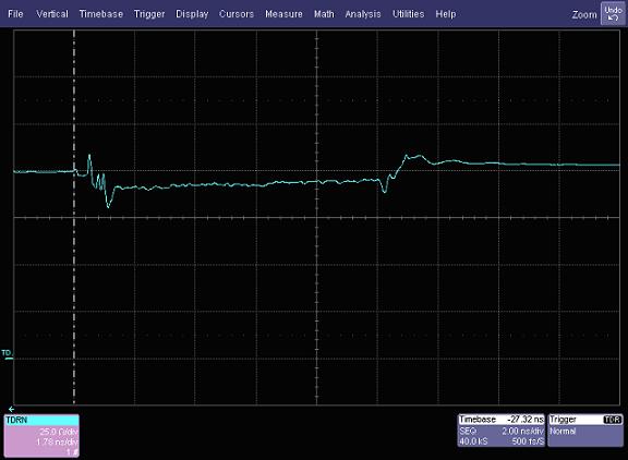 Figure 1: Differential impedance vs. time measurement for USB3.0 cable and mated connectors
