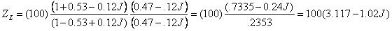舉個(gè)例子,用100歐姆阻抗表征的復(fù)合回波損耗S11 = 0.53 - 0.12J 轉(zhuǎn)換到90歐姆的如下: