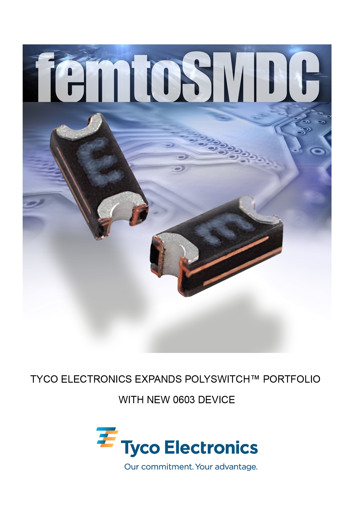 泰科電子(Tyco Electronics)今天宣布其廣受歡迎的表面貼裝PolySwitch™器件系列再添一款符合行業(yè)標準的新型0603器件。femtoSMDC016F器件的占板面積不到上一代器件的一半,并且有助于保護敏感電子電路免受過流及過溫事故的損壞。該器件的快速動作時間和可復位功能可幫助制造商降低保修費用和提高各種便攜式電子產(chǎn)品的可靠性,比如以下產(chǎn)品: