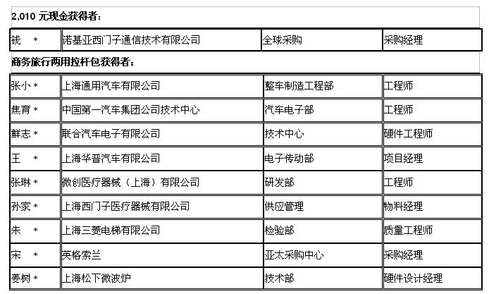 以下是第一批中獎名單,并已于12月底通過展會官方電子通訊向業(yè)界通知。