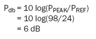 當(dāng)D類放大器的工作電壓為14V時(shí),可出現(xiàn)98W的峰值。轉(zhuǎn)換為分貝是: