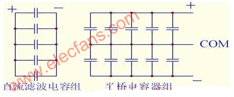 感應(yīng)加熱設(shè)備電路結(jié)構(gòu)分為兩種.從市面上的產(chǎn)品來(lái)看,30KW以內(nèi)采用的是半橋.30KW以上采用的是全橋.以半橋30KW機(jī)芯來(lái)看,薄膜電容器的使用情況如下:
