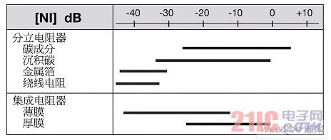 電阻器中電流噪聲等級(jí)通常用單位μV/V或者分貝(按照噪聲指數(shù)[NI]dB)表示