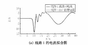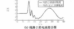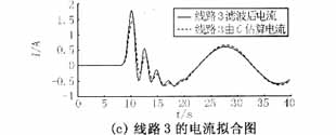 對(duì)上述方法用Matlab編程,對(duì)仿真數(shù)據(jù)進(jìn)行分析,求解系統(tǒng)對(duì)地電容值??紤]到噪聲污染以及各種隨機(jī)干擾的存在,先對(duì)故障數(shù)據(jù)進(jìn)行數(shù)字濾波,將17次以上的諧波去除后再對(duì)仿真或?qū)崪y(cè)數(shù)據(jù)進(jìn)行運(yùn)算。本例所得由電容所計(jì)算電流與濾波后電流擬合波形如圖3所示(本文對(duì)數(shù)據(jù)濾波時(shí)采用的是巴特沃思濾波器,除去9次諧波以上的高次諧波)。