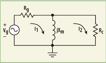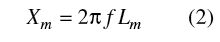 這里:Pg=源的最大可用功率、Pc=負(fù)載功率、Rg=源阻抗、Xm=磁抗。最后這個(gè)參數(shù)可通過(guò)下式由工作頻率f和磁芯的磁化電感Lm求得: