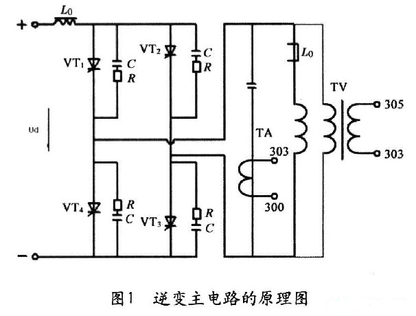 圖1為逆變主電路的原理圖,L0是啟動(dòng)磁環(huán),TA是電流互感器,TV是電壓互感器,分別為反饋電路提供檢測(cè)電流和檢測(cè)電壓信號(hào)。