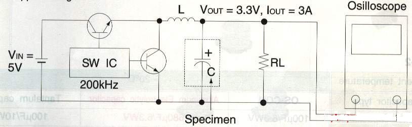 而上圖的表格則表明了,在L/C部分使用不同種類電容的情況下,這個(gè)電路中漣波電壓的表現(xiàn)情況??梢钥闯?,具有LOW ESR性能的鋁固體聚合物導(dǎo)體電容(左邊),其消除漣波電壓的性能最強(qiáng),鉭二氧化錳電容(右邊)性能次之,鋁電解液電容(中間)表現(xiàn)最差。同時(shí)最后的數(shù)值還將受溫度影響,這點(diǎn)我們還將在后面詳細(xì)說明。
