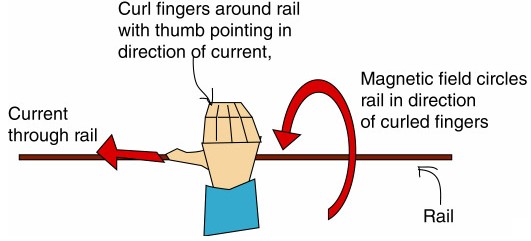 根據(jù)Maxwell方程式,移動走線中的電荷可以產(chǎn)生一電流,此電流又會產(chǎn)生一磁場,這種被移動電荷產(chǎn)生的磁場稱作「磁通線(magnetic lines of flux)」。使用「右手法則(Right-Hand Rule)」可以輕易地指出磁通線的方向,如附圖四所示。右手拇指代表走線電流流動的方向,其余卷曲的手指包圍著走線,代表磁場或磁通線的方向。此外,時(shí)變磁場會產(chǎn)生一個(gè)垂直的電場。射頻輻射是此磁場和電場的組合。藉由輻射或?qū)щ姷姆绞?,磁場和電場會離開PCB結(jié)構(gòu)。