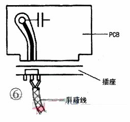 高頻電路中,印制導(dǎo)線分布參數(shù)對(duì)信號(hào)影響大,且不容易進(jìn)行阻抗匹配,可局部使用專用屏蔽線連接,如圖7所示。
